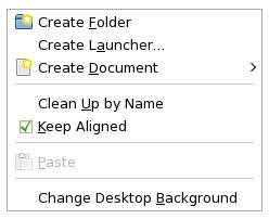 - Create Launcher - Allows an icon to be placed on the desktop which, when double clicked, launches a specified application. Another way to add application launchers to the desktop is to find them in the menu systems at the top of the screen, right click on them and select Add this launcher to desktop.