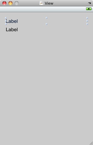 Be sure to stretch the labels so that they both extend to cover most of the width of the view. Once the label objects have been added to the view, establish a connection between the xCoord outlet and the top label by Crtl-clicking on the File’s Owner and dragging the blue line to the top label. Release the pointer and select xCoord from the resulting menu. Repeat this step for the yCoord.