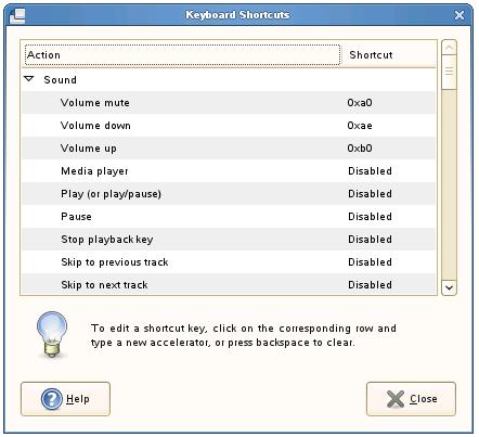 The GNOME desktop has a set of predefined actions to which a keyboard shortcut may be assigned. By default some of these actions already have a key sequence assigned to them. Other actions are disabled by default. As a user you have the power to view the current shortcut settings, change or disable currently configured shortcuts and to assign shortcuts to disabled actions.