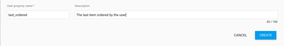 Once the app has been selected, click on the Analytics link in the left-hand navigation panel so that the Analytics Dashboard screen appears. Click on the User Properties tab in the toolbar at the top of the dashboard screen followed by the New User Property button. In the new property panel, enter last_ordered into the user property name field and a brief description into the description field before clicking on the Create button. The property should then be listed as illustrated in Figure 41‑3: