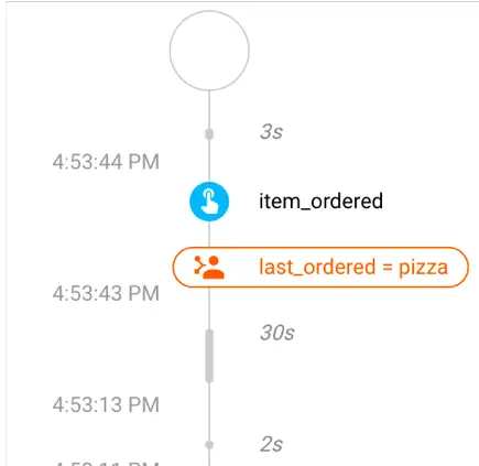 Clicking on the item_ordered event in the stream will display additional information about the event, including the payment method and item parameters:
