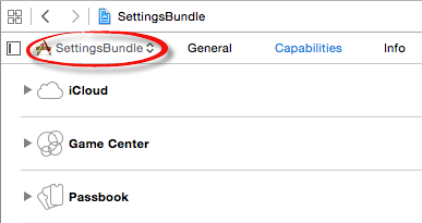 Begin by selecting the SettingsBundle target located at the top of the Project Navigator panel and clicking on the Capabilities tab in the main panel. Within the capabilities panel, locate the App Groups section and switch the setting to the On position.