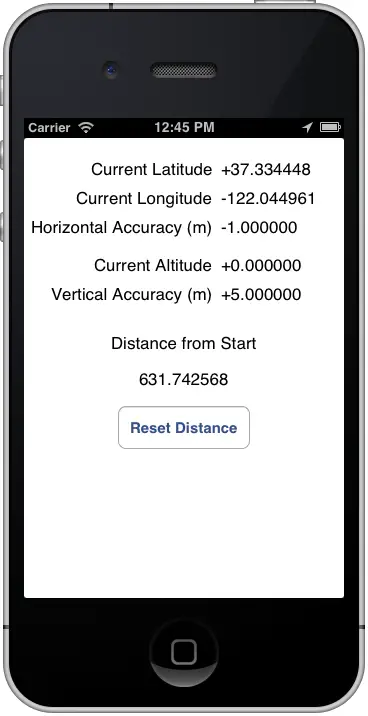 If this is the first time that the method has been called either since the application was launched or the user pressed the Reset Distance button, the locationDistance object is set to the current location. The distanceFromLocation method of the newLocation object is then called, passing though the locationDistance object as an argument in order to calculate the distance between the two points. The result is then displayed on the distance label in the user interface.