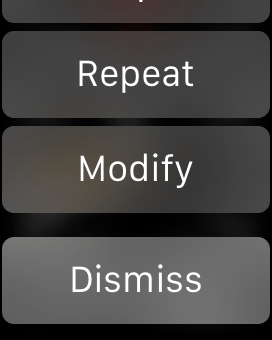 Notifications within an iOS app can be configured to add action buttons which appear within the notification panel and, when tapped by the user, trigger application specific actions. If the iOS app has a companion WatchKit app, these same notification action buttons also appear within the long-look notification on the Apple Watch device. Figure 32-2, for example, shows a long-look notification which has been scrolled up to reveal two action buttons in addition to the default “Dismiss” button:
