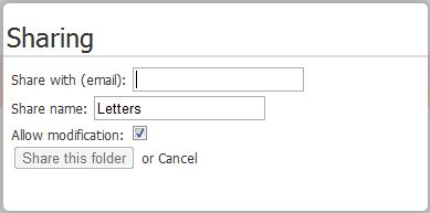 To enable sharing, click on the green Share folder link to display the Sharing panel: