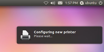 By far the easiest type of printer configuration is when the printer is attached directly to the system via a parallel, serial or USB port. To configure a local printer simply attach the printer to the appropriate port on the Ubuntu system and switch the printer on. The chances are good that Ubuntu will detect the presence of the new printer in which case a notification will appear on the screen: