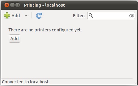 When Ubuntu detects a printer it will automatically select a driver if the printer is recognized and a driver is available. To manually add a printer, click on the power button in the top right hand corner of the screen, select System Settings from the menu and click on Printing in the resulting Control Center window to display the Printing dialog: