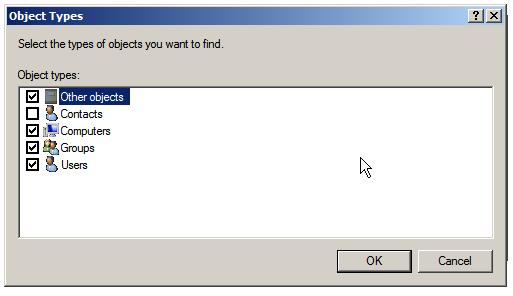 As indicated above, only Users and Groups are currently configured for addition. In order to be able to add the Terminal Server computers click on the Object Types... button to invoke the Object Types dialog and select the Computers check box as illustrated in the following figure: