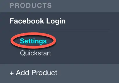 The OAuth Redirect URI copied from the Firebase console in a previous section now needs to be setup for the app within the Facebook for Developers portal. Select the Settings option listed under Facebook Login in the Products section of the navigation panel: