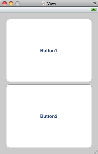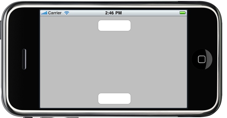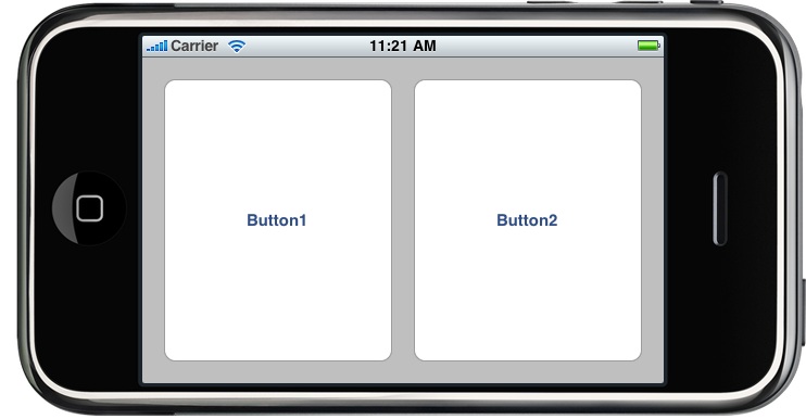 The size and co-ordinates that we specified in our method are designed to position the buttons side by side when the device rotates into a landscape orientation and then back to the above layout when it returns to portrait. Before we try this out, however, we need to set up the connections from the buttons to the two outlets we created in the view controller. To achieve this, hold down the control key and click and drag from the File’s Owner icon to the top button. Release at this point and select firstButton from the resulting menu. Repeat this for the other button, selecting secondButton from the menu. Save the file and return to Xcode where you can build and run the application. Once the application is running, rotate the simulator window by selecting the Hardware -> Rotate Left menu option. The device window should rotate and the buttons appear side by side: