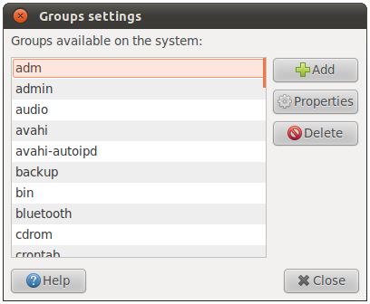 All users are members of one or more groups. As an administrator it makes sense to organize users into logical groups. For example all sales people might belong to a sales group, whilst accounting staff might belong to the accounts group and so on. New groups are added either using the User Settings graphical tool, or by using the addgroup command-line tool. In this section we will look at both methods.