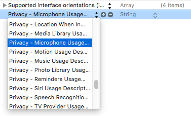 02:12, 9 November 2016 Xcode 8 ios 10 adding microphone usage key.png (file) 36 KB   1